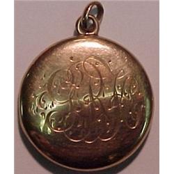 10K gold and diamond locket, 1" diameter round locket set with small diamond, initialed on back, includes velvet box, wt. 3.4 dwt/5.3 g Estimate 60/90