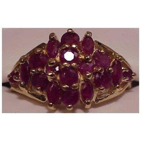 This yellow gold ruby ring has 18 real rubies and is set in 10K gold.