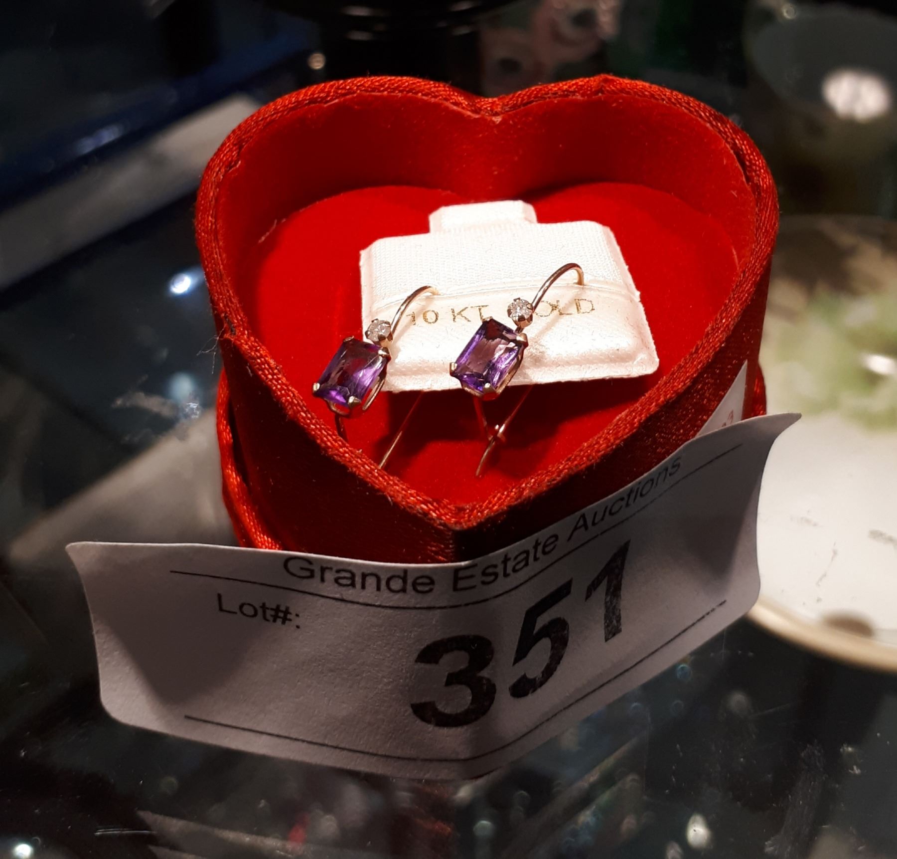 10KT GOLD AMETHYST & DIAMOND EARRINGS