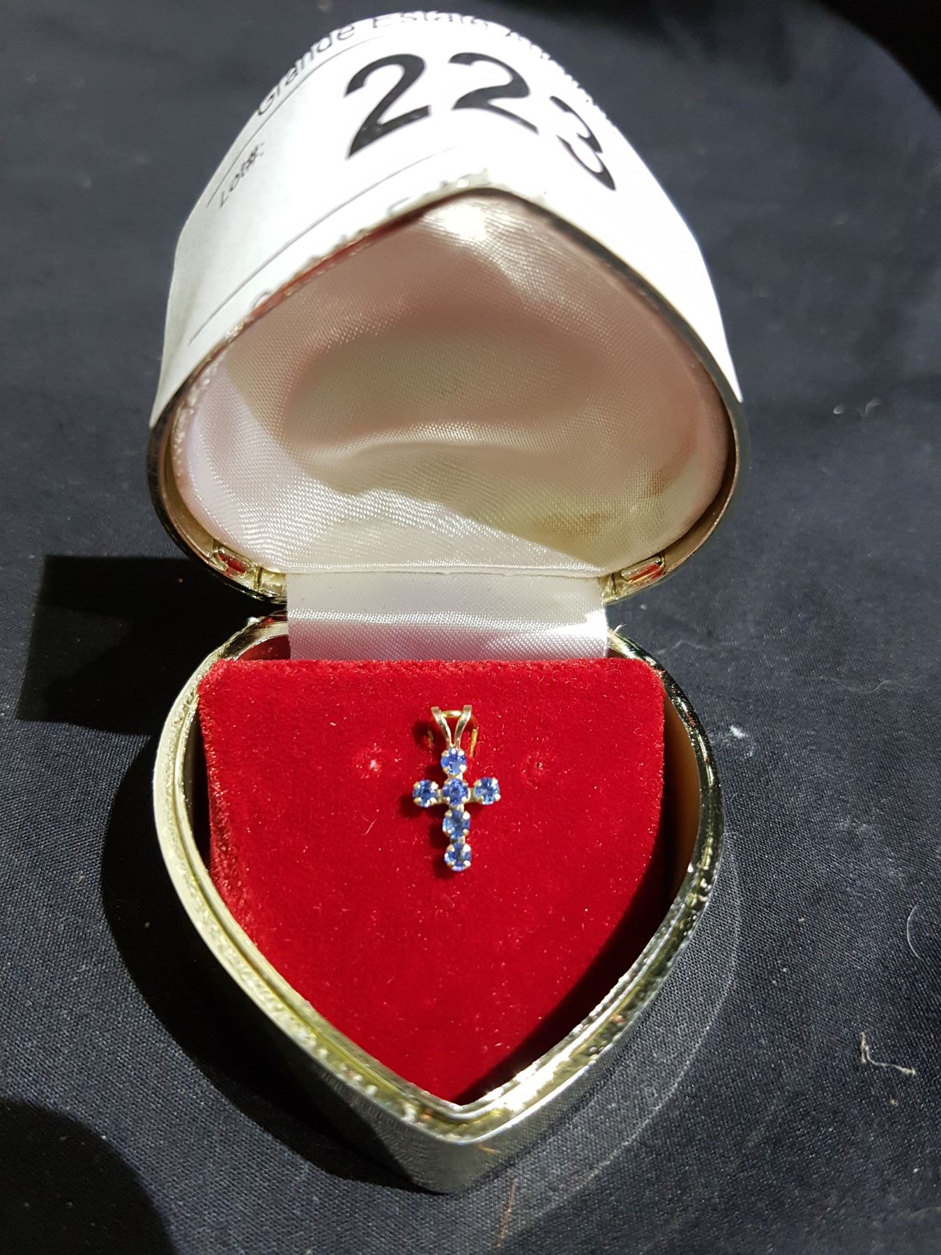 10KT GOLD SAPPHIRE CROSS PENDANT