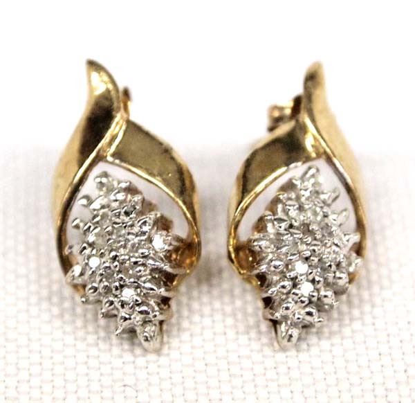10KT Gold & Diamond Earrings, measure 5/8''L, 2.4g in total wt.
