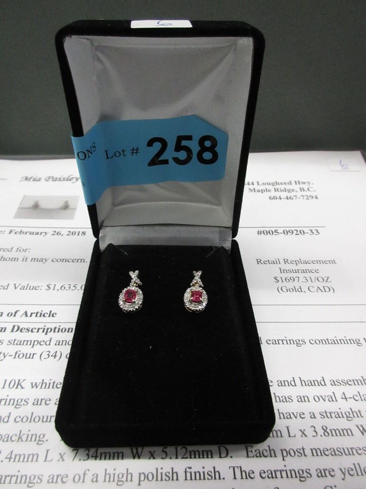 White & Yellow Gold. 2 Oval Rubies .56 CTW. 34 Round White Diamonds. With $1635 Appraisal