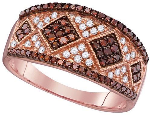 10KT Rose Gold 0.51CTW RED DIAMOND FASHION RING **|**|** Source: 104327 ; Metal: gold ; Metal Purity: 10KT ; Ring Size: 7 ; Sizeable: TRUE ; Main Stone: I1-I2 ; Total Carat: 0.51 ; Main Stone Color: H-I Color ; All diamonds are natural but colored diamonds are enhanced.