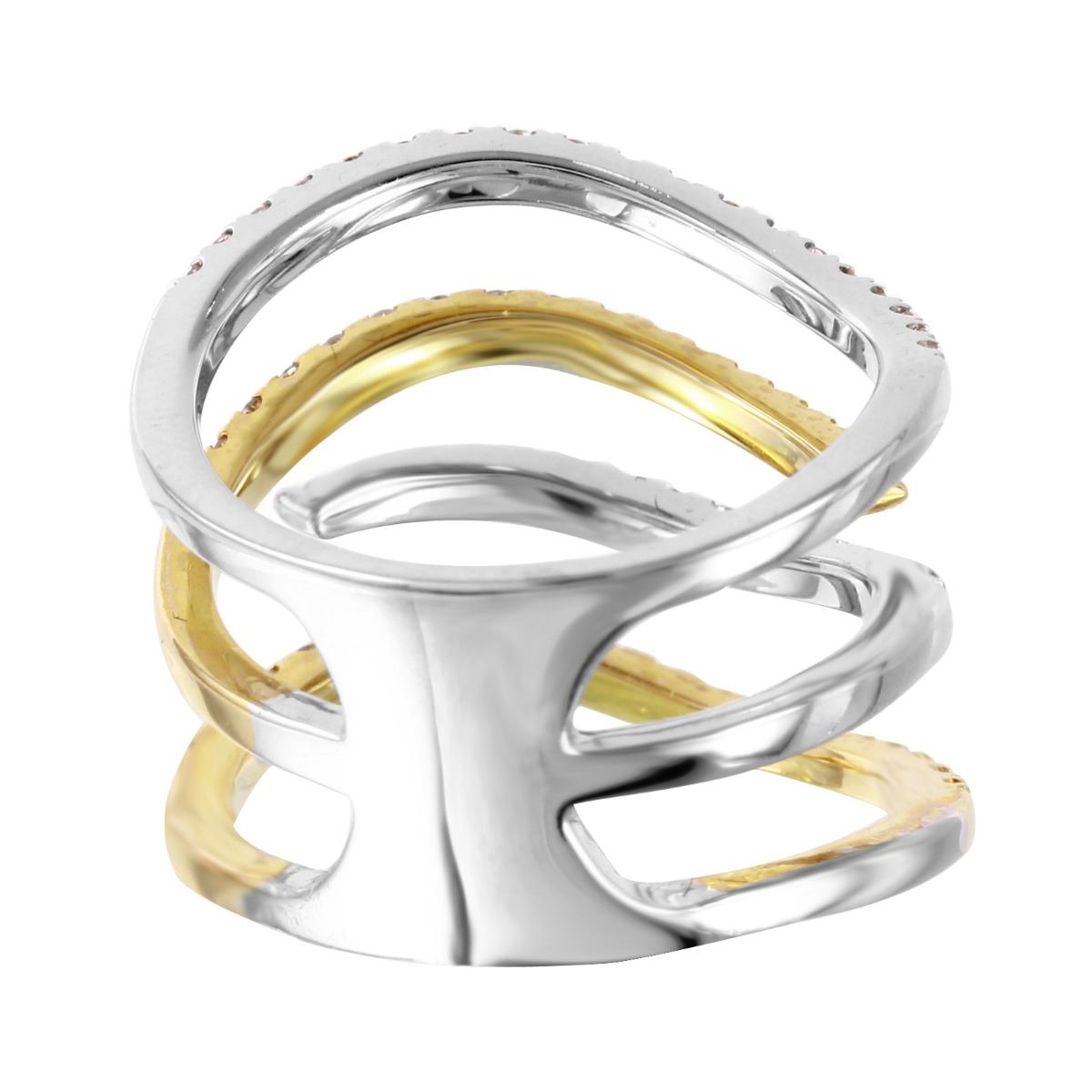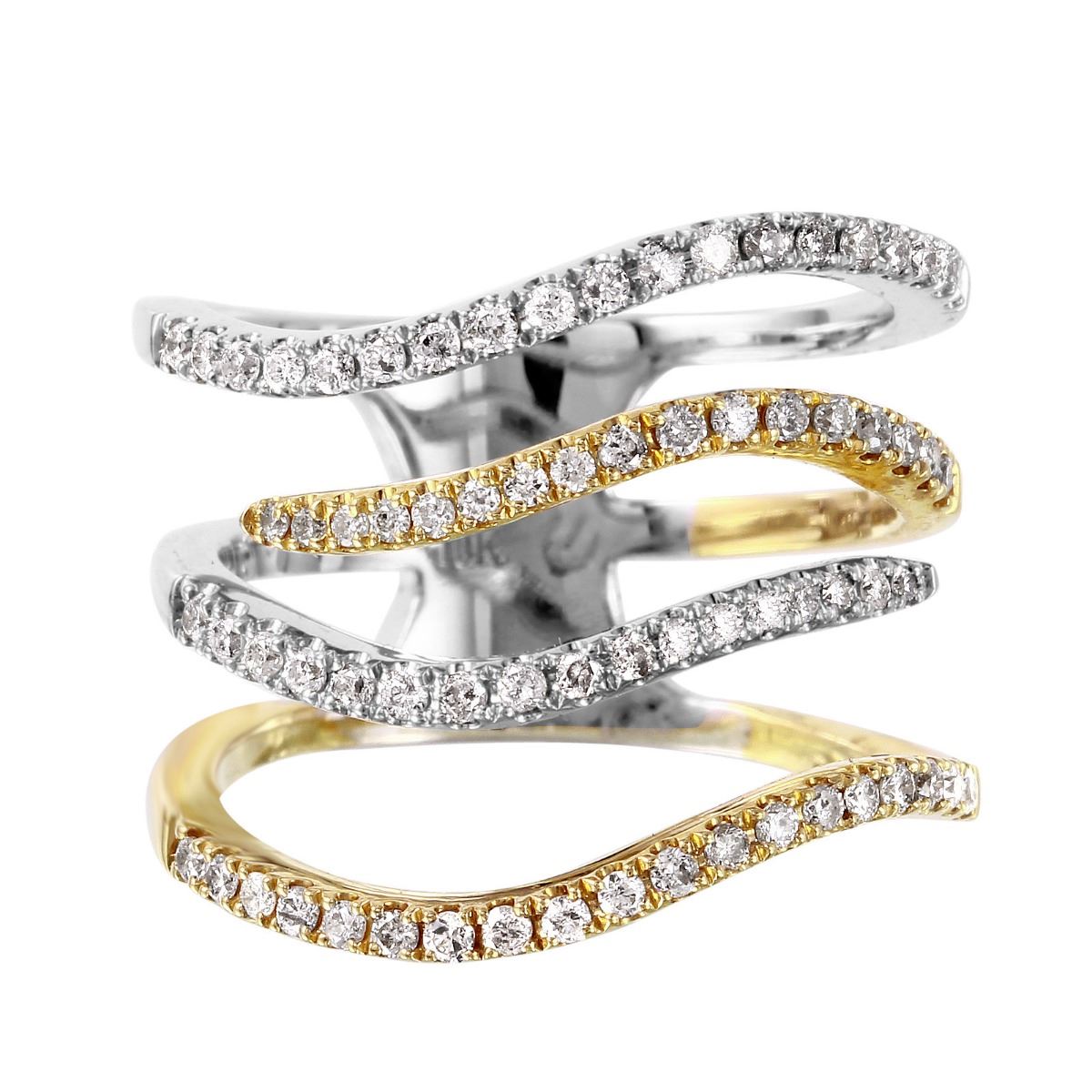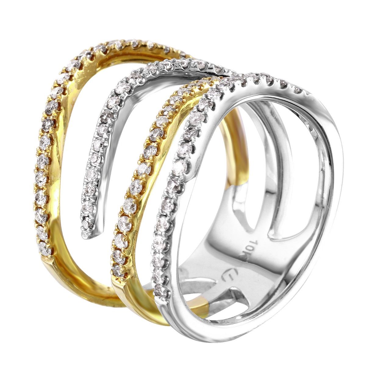 This tri color brightly polished 14KT gold ring features round brilliant cut diamonds bead set on yellow, white and rose gold slim bands, connected on the back of the ring.SpecificationsJewelry InformationCategory: RingCategory Style: DiamondNew/Used: NewGender: FemaleRing Size: 6Metal: 10KT Rose GoldTotal Weight: 5.04 GramsTotal Diamond Weight: 0.50ctwTotal Weight all Stones: 0.50ctwInternal ID:2105Diamond 1Total Carat Weight: 0.50ctwClarity: SI1-I1Color: H-IShape: RoundCut: Round Brilliant CutCount: 51DisclaimersThe descriptions listed should not be construed as an appraisal. The detail is provided as a guideline for color, clarity, weights and measurements to the best of our ability. We welcome inspections. WE SHIP WORLDWIDE!This item has a Reserve established by our consigner.