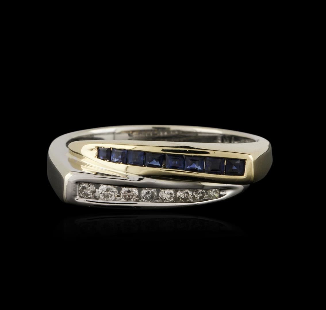 One ring featuring: 14KT white and yellow gold weighing 3.77 grams containing blue sapphires with a total weight of 0.20ct and diamonds with a total weight of 0.20ct.