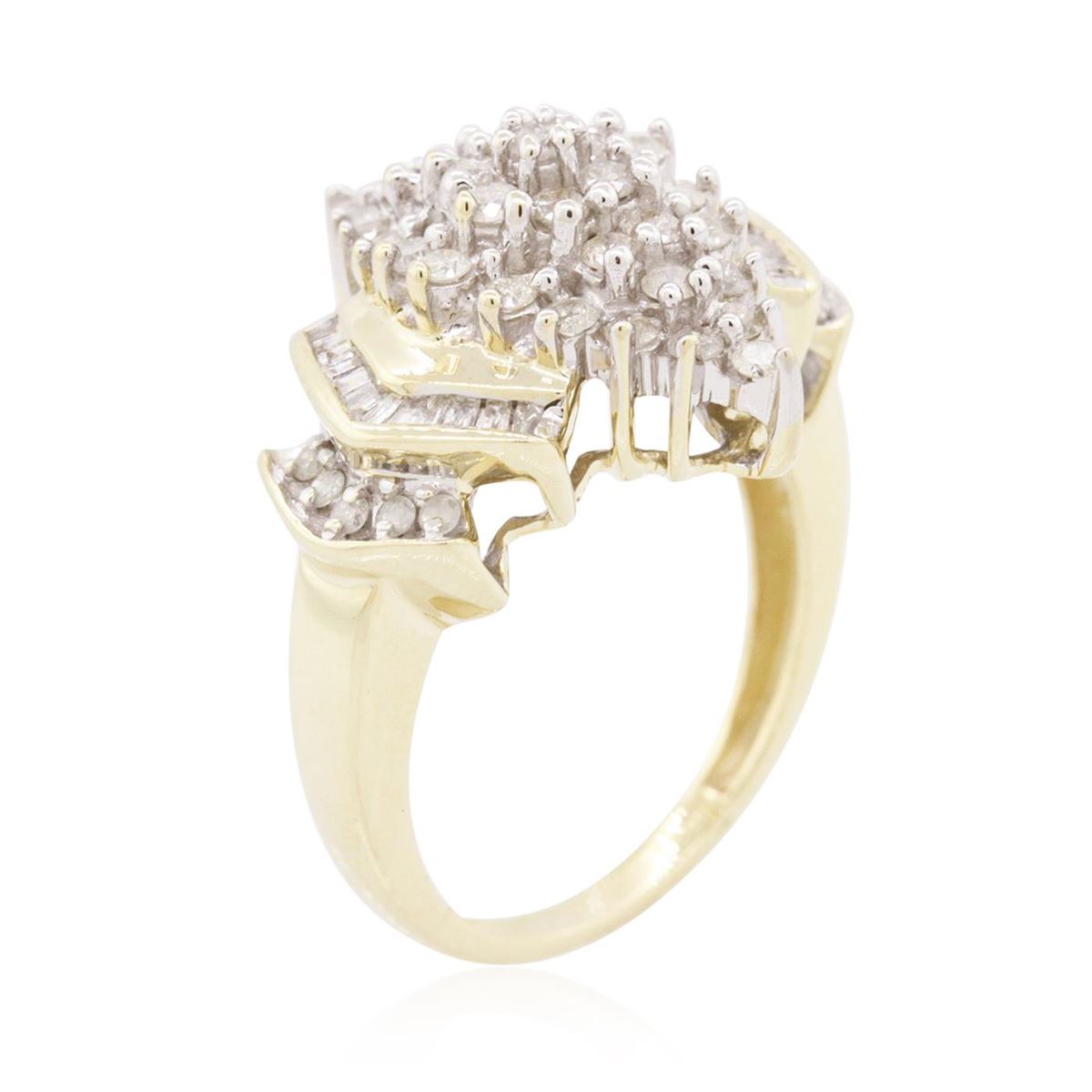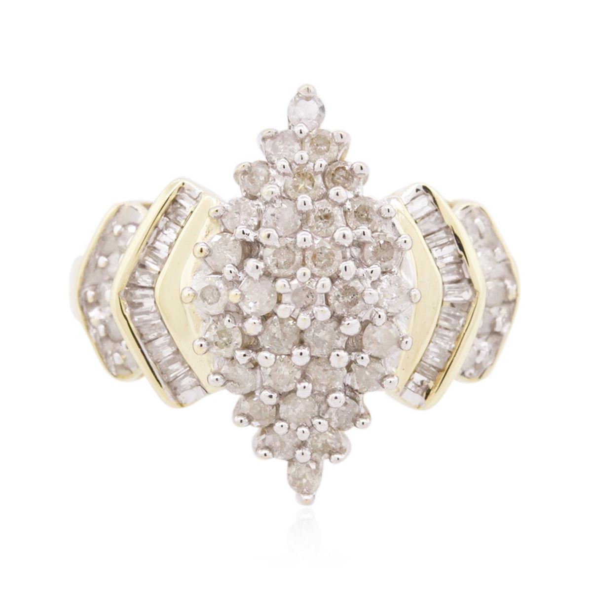 One ring featuring: 10KT yellow and white gold weighing 6.20 grams containing round/baguette cut diamonds with a total weight of 1.00cts.