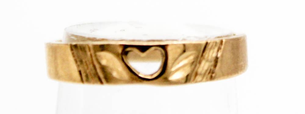 10KT WOMENS GOLD HEART & ETCHED RING; SIZE 4