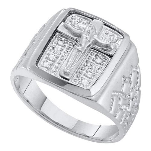10KT White Gold 0.01CTW DIAMOND MENS CROSS RING **|**|** 10KT White Gold 0.01CTW DIAMOND MENS CROSS RING (I1-I2;H-I) # 23548