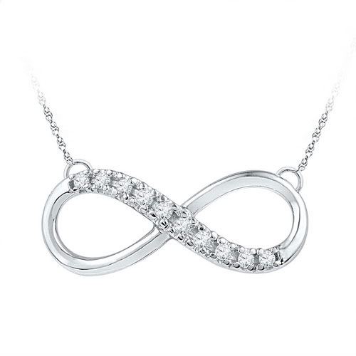 10KT White Gold 0.10CTW DIAMOND INFINITY NECKLACE **|**|** Source: 97512 ; Metal: gold ; Metal Purity: 10KT ; Main Stone: I1-I2 ; Total Carat: 0.1 ; Main Stone Color: H-I Color ; All diamonds are natural but colored diamonds are enhanced.