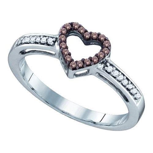 10KT White Gold 0.12CTW COGNAC DIAMOND LADIES HEART RIN **|**|** Source: 72382 ; Metal: Gold ; Metal Purity: 10KT ; Ring Size: 7 ; Main Stone: I1-I2 ; Total Carat: 0.12 ; Main Stone Color: H-I Color ; All diamonds are natural but colored diamonds are enhanced.