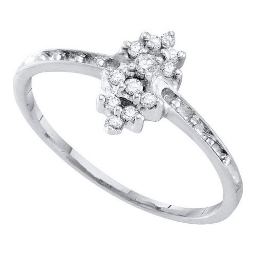 10KT White Gold 0.12CTW DIAMOND CLUSTER RING WHITE GOLD **|**|** Source: 10250 ; Metal: Gold ; Metal Purity: 10KT ; Ring Size: 7 ; Main Stone: I1-I2 ; Total Carat: 0.12 ; Main Stone Color: H-I Color ; All diamonds are natural but colored diamonds are enhanced.