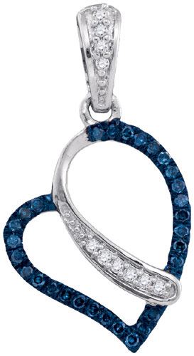10KT White Gold 0.13CT BLUE DIAMOND HEART PENDANT **|**|** Source: 92114 ; Metal: gold ; Metal Purity: 10KT ; Main Stone: I1-I2 ; Total Carat: 0.13 ; Main Stone Color: H-I Color ; All diamonds are natural but colored diamonds are enhanced.