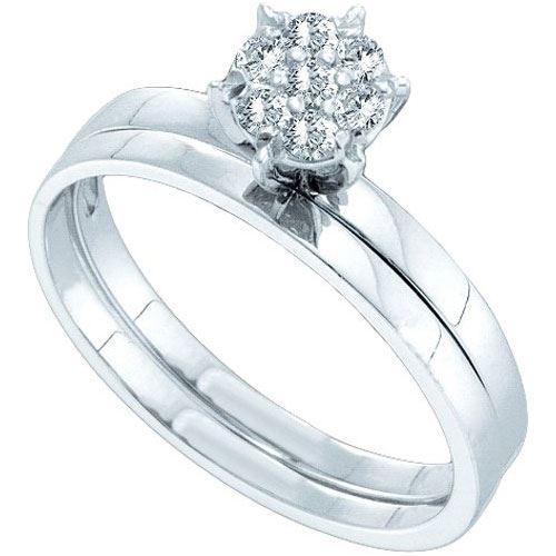 10KT White Gold 0.15CTW ROUND DIAMOND BRIDAL SET **|**|** Source: 51036 ; Metal: Gold ; Metal Purity: 10KT ; Ring Size: 7 ; Main Stone: I1-I2 ; Total Carat: 0.15 ; Main Stone Color: H-I Color ; All diamonds are natural but colored diamonds are enhanced.