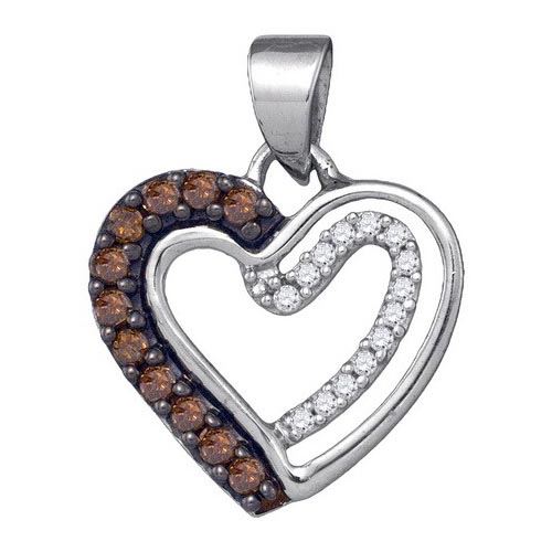 10KT White Gold 0.20CTW COGNAC DIAMOND HEART PENDANT ` **|**|** 10KT White Gold 0.20CTW COGNAC DIAMOND HEART PENDANT ` (I1-I2;H-I) # 86997