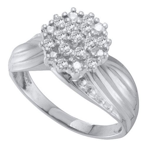 10KT White Gold 0.20CTW DIAMOND CLUSTER RING **|**|** Source: 54980 ; Metal: Gold ; Metal Purity: 10KT ; Ring Size: 7 ; Main Stone: I1-I2 ; Total Carat: 0.2 ; Main Stone Color: H-I Color ; All diamonds are natural but colored diamonds are enhanced.