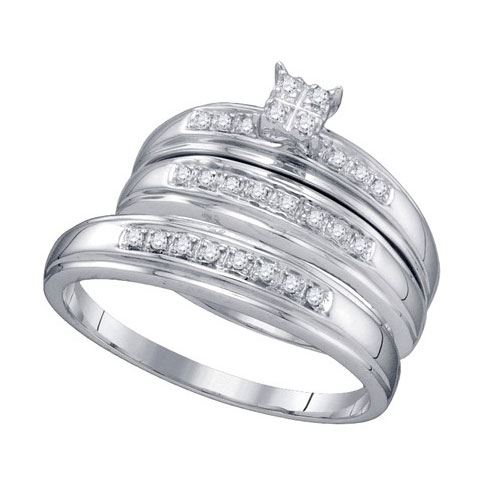 10KT White Gold 0.20CTW DIAMOND CLUSTER TRIO SET **|**|** Source: 48382 ; Metal: Gold ; Metal Purity: 10KT ; Ring Size: Women: 7 Men: 10 ; Main Stone: I1-I2 ; Total Carat: 0.2 ; Main Stone Color: H-I Color ; All diamonds are natural but colored diamonds are enhanced.