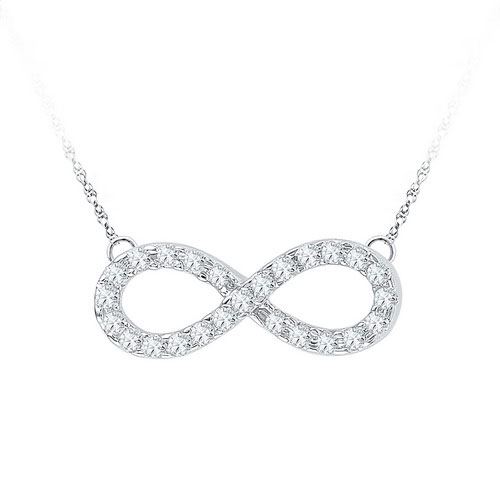 10KT White Gold 0.20CTW DIAMOND INFINITY NECKLACE **|**|** Source: 97440 ; Metal: gold ; Metal Purity: 10KT ; Main Stone: I1-I2 ; Total Carat: 0.2 ; Main Stone Color: H-I Color ; All diamonds are natural but colored diamonds are enhanced.