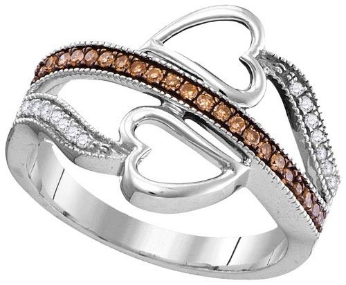 10KT White Gold 0.21CTW COGNAC DIAMOND FASHION RING **|**|** Source: 104453 ; Metal: gold ; Metal Purity: 10KT ; Ring Size: 7 ; Sizeable: TRUE ; Main Stone: I1-I2 ; Total Carat: 0.21 ; Main Stone Color: H-I Color ; All diamonds are natural but colored diamonds are enhanced.