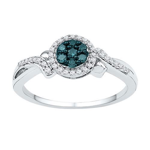 10KT White Gold 0.25CTW BLUE DIAMOND FASHION RING **|**|** Source: 97291 ; Metal: gold ; Metal Purity: 10KT ; Ring Size: 7 ; Sizeable: TRUE ; Main Stone: I1-I2 ; Total Carat: 0.25 ; Main Stone Color: H-I Color ; All diamonds are natural but colored diamonds are enhanced.