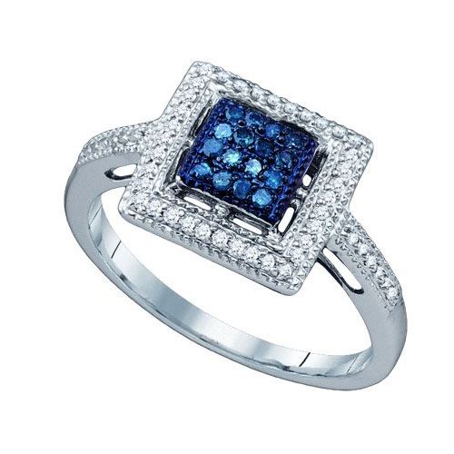 10KT White Gold 0.25CTW BLUE DIAMOND FASHION RING **|**|** Source: 60792 ; Metal: Gold ; Metal Purity: 10KT ; Ring Size: 7 ; Main Stone: I1-I2 ; Total Carat: 0.25 ; Main Stone Color: H-I Color ; All diamonds are natural but colored diamonds are enhanced.