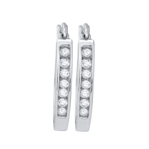 10KT White Gold 0.25CTW DIAMOND FASHION HOOPS **|**|** Source: 23426 ; Metal: Gold ; Metal Purity: 10KT ; Ring Size: ; Main Stone: I1-I2 ; Total Carat: 0.25 ; Main Stone Color: H-I Color ; All diamonds are natural but colored diamonds are enhanced.