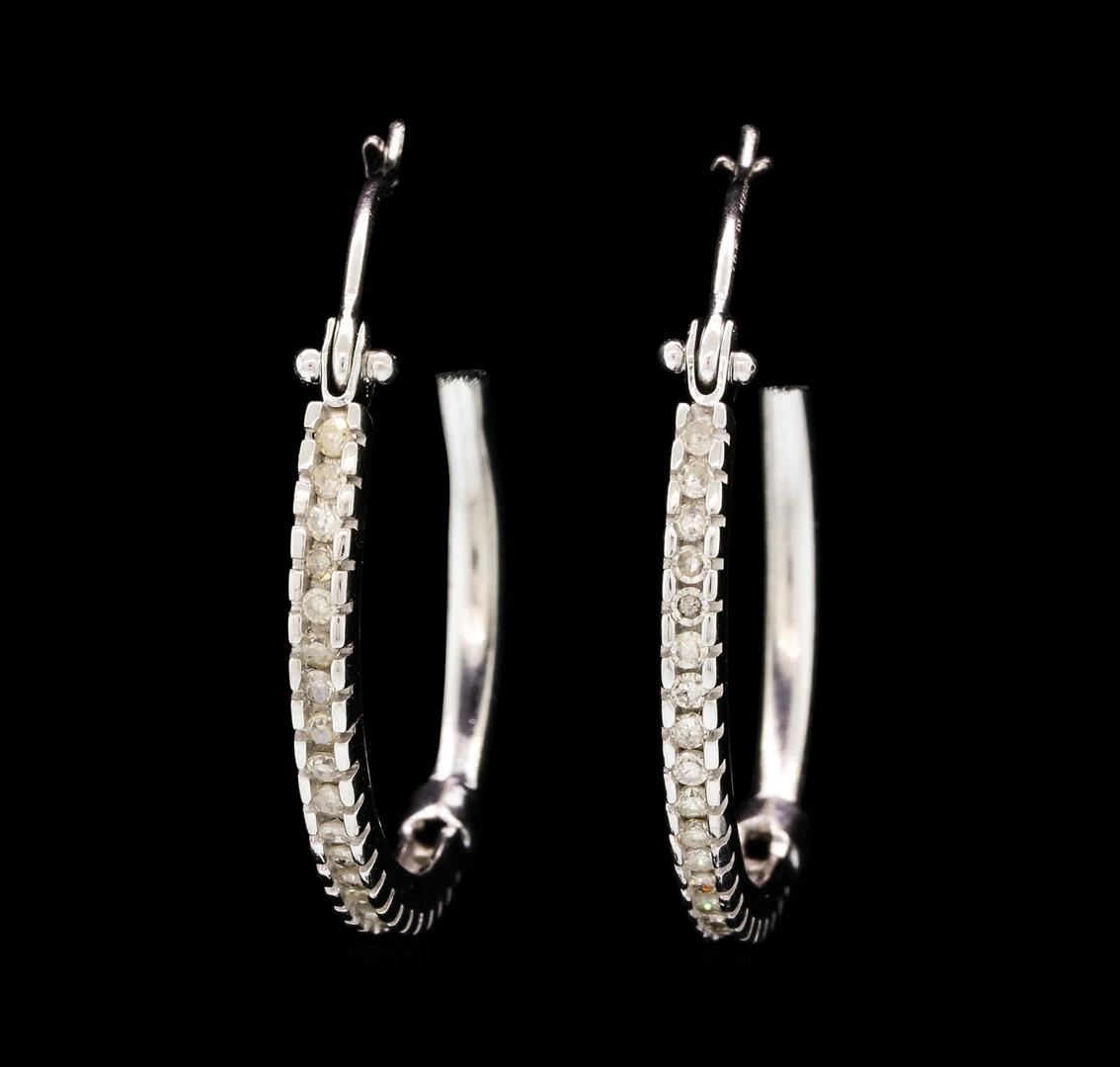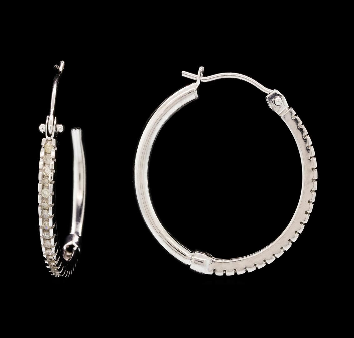 One pair of lady's hoop earrings with a one inch diameter featuring: 10KT white gold weighing 2.1 grams containing diamonds weighing 0.25ctw.