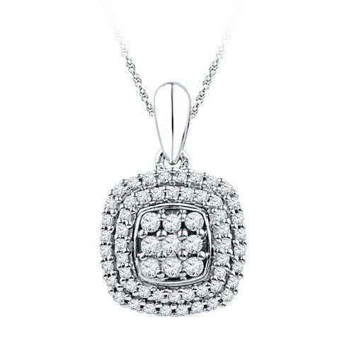 10KT White Gold 0.33CTW DIAMOND FASHION PENDANT **|**|** Source: 97483 ; Metal: gold ; Metal Purity: 10KT ; Main Stone: I1-I2 ; Total Carat: 0.33 ; Main Stone Color: H-I Color ; All diamonds are natural but colored diamonds are enhanced.