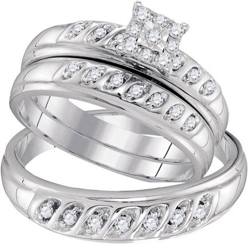 10KT White Gold 0.33CTW DIAMOND FASHION TRIO-SET **|**|** Source: 96764 ; Metal: gold ; Metal Purity: 10KT ; Ring Size: 7 ; Sizeable: TRUE ; Main Stone: I1-I2 ; Total Carat: 0.33 ; Main Stone Color: H-I Color ; All diamonds are natural but colored diamonds are enhanced.
