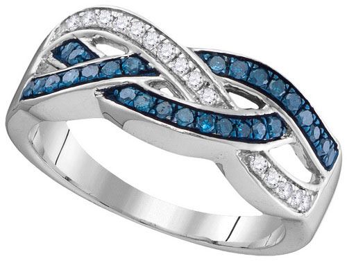 10KT White Gold 0.35CTW BLUE DIAMOND FASHION RING **|**|** Source: 104420 ; Metal: gold ; Metal Purity: 10KT ; Ring Size: 7 ; Sizeable: TRUE ; Main Stone: I1-I2 ; Total Carat: 0.35 ; Main Stone Color: H-I Color ; All diamonds are natural but colored diamonds are enhanced.