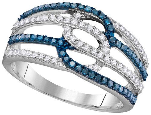 10KT White Gold 0.46CTW BLUE DIAMOND FASHION RING **|**|** Source: 104418 ; Metal: gold ; Metal Purity: 10KT ; Ring Size: 7 ; Sizeable: TRUE ; Main Stone: I1-I2 ; Total Carat: 0.46 ; Main Stone Color: H-I Color ; All diamonds are natural but colored diamonds are enhanced.