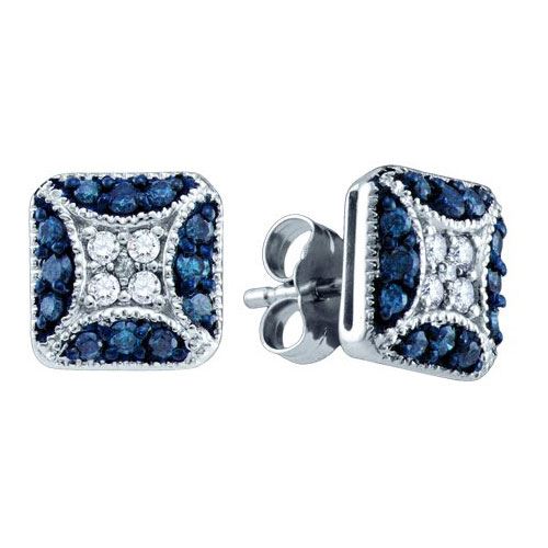 10KT White Gold 0.50CTW BLUE DIAMOND FASHION EARRINGS **|**|** Source: 65830 ; Metal: Gold ; Metal Purity: 10KT ; Ring Size: ; Main Stone: I1-I2 ; Total Carat: 0.5 ; Main Stone Color: H-I Color ; All diamonds are natural but colored diamonds are enhanced.