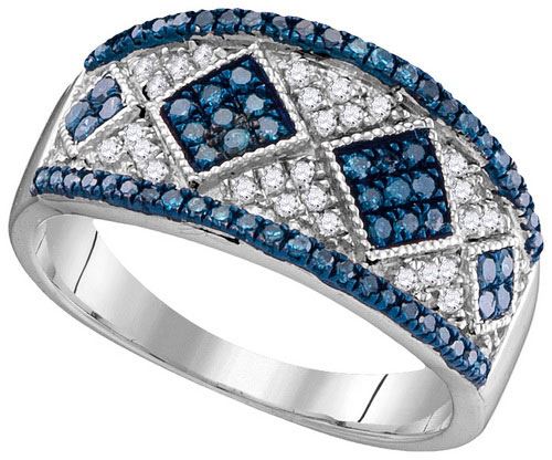 10KT White Gold 0.51CTW BLUE DIAMOND FASHION RING **|**|** Source: 104347 ; Metal: gold ; Metal Purity: 10KT ; Ring Size: 7 ; Sizeable: TRUE ; Main Stone: I1-I2 ; Total Carat: 0.51 ; Main Stone Color: H-I Color ; All diamonds are natural but colored diamonds are enhanced.