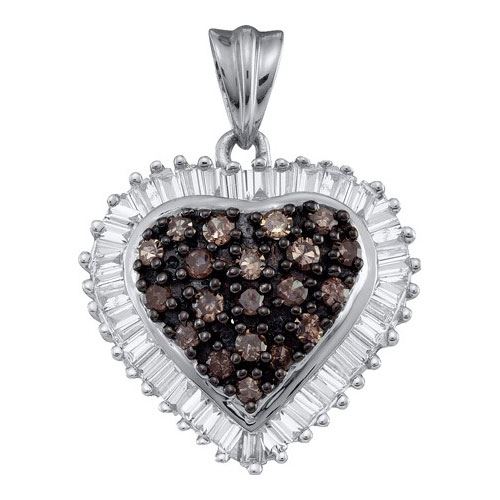 10KT White Gold 1.0CTW COGNAC DIAMOND HEART PENDANT **|**|** Source: 60462 ; Metal: Gold ; Metal Purity: 10KT ; Ring Size: ; Main Stone: I1-I2 ; Total Carat: 1 ; Main Stone Color: H-I Color ; All diamonds are natural but colored diamonds are enhanced.