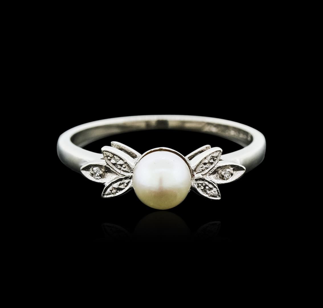 One ring featuring: 10KT white gold weighing 1.70 grams containing one center pearl measuring 5.00mm and diamonds with a total weight of 0.05ct.