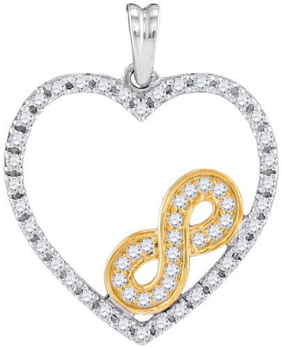 10KT White Gold Two Tone 0.27CTW- HEART PENDANT **|**|** Source: 98143 ; Metal: gold ; Metal Purity: 10KT ; Sizeable: TRUE ; Main Stone: I1-I197 ; Total Carat: 0.27 ; Main Stone Color: H-I Color ; All diamonds are natural but colored diamonds are enhanced.