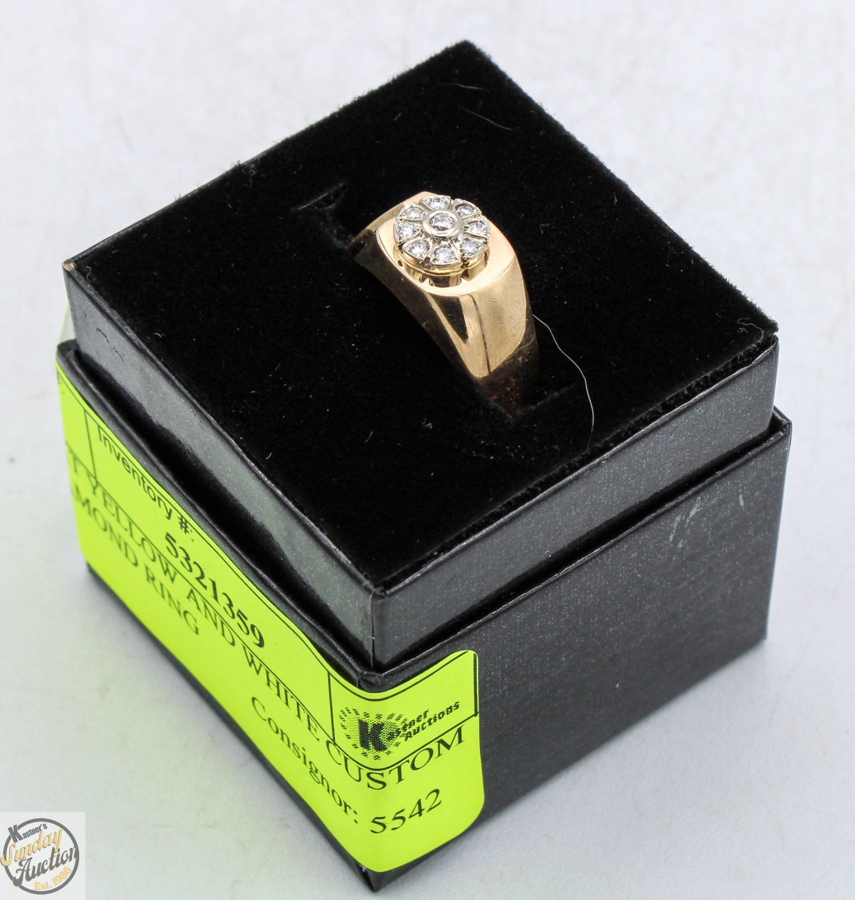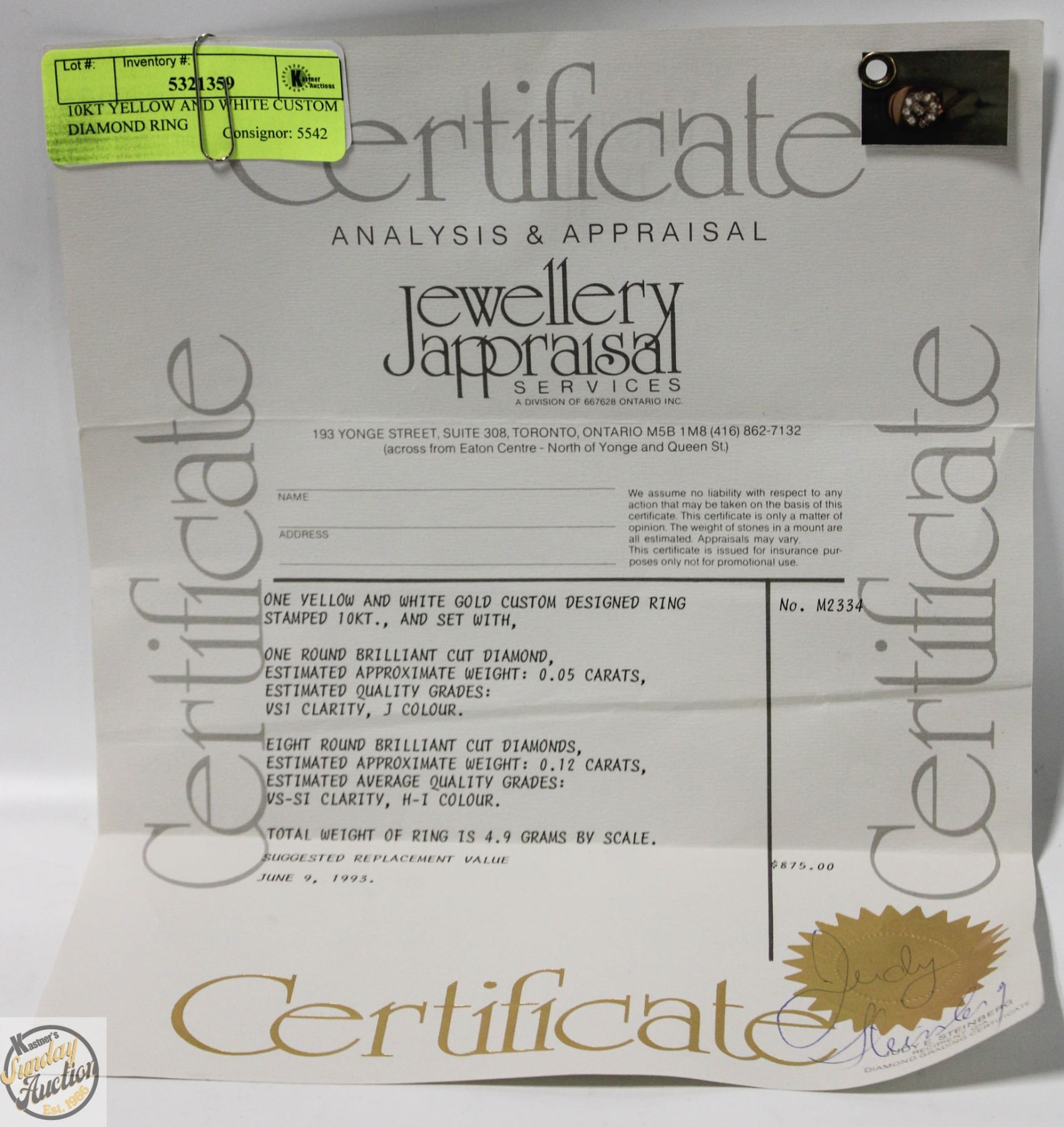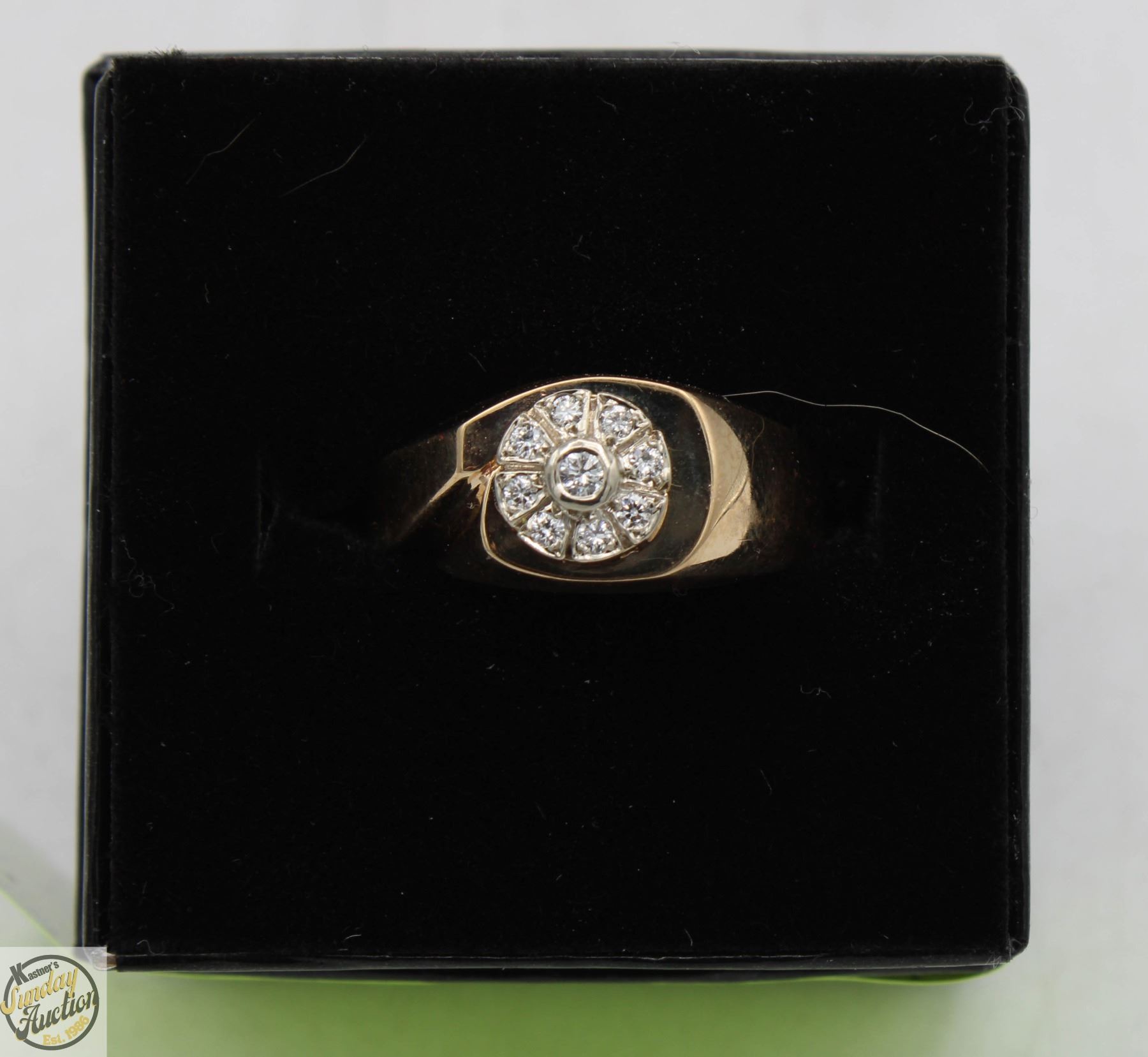 SET WITH ROUND BRILLIANT CUT DIAMOND WEIGHT 0.05CT, VSI CLARITY J COLOR, EIGHT ROUND BRILLIANT CUT DIAMONDS WITH ESTIMATED WEIGHT 0.12CT, VS-SI CLARITY, H-I COLOR. TOTAL WEIGHT 4.9, COMES WITH 1993 APPRAISAL FROM JEWELLERY APPRAISAL SERVICES, REPLACEMENT VALUE $875.00 SIZE 9 **ALL ITEMS MUST BE REMOVED BY 5PM SATURDAY, MAY 17TH 2025. ALL REMAINING ITEMS WILL BE SUBJECT TO A $6.00 PER DAY STORAGE CHARGE. ANY ITEMS REMAINING AFTER MONDAY, JUNE 2ND 2025 WILL BE CONSIDERED FORFEITED. NO REFUNDS WILL BE ISSUED FOR FORFEITED ITEMS. TO SCHEDULE A PICK UP APPOINTMENT CLICK HERE