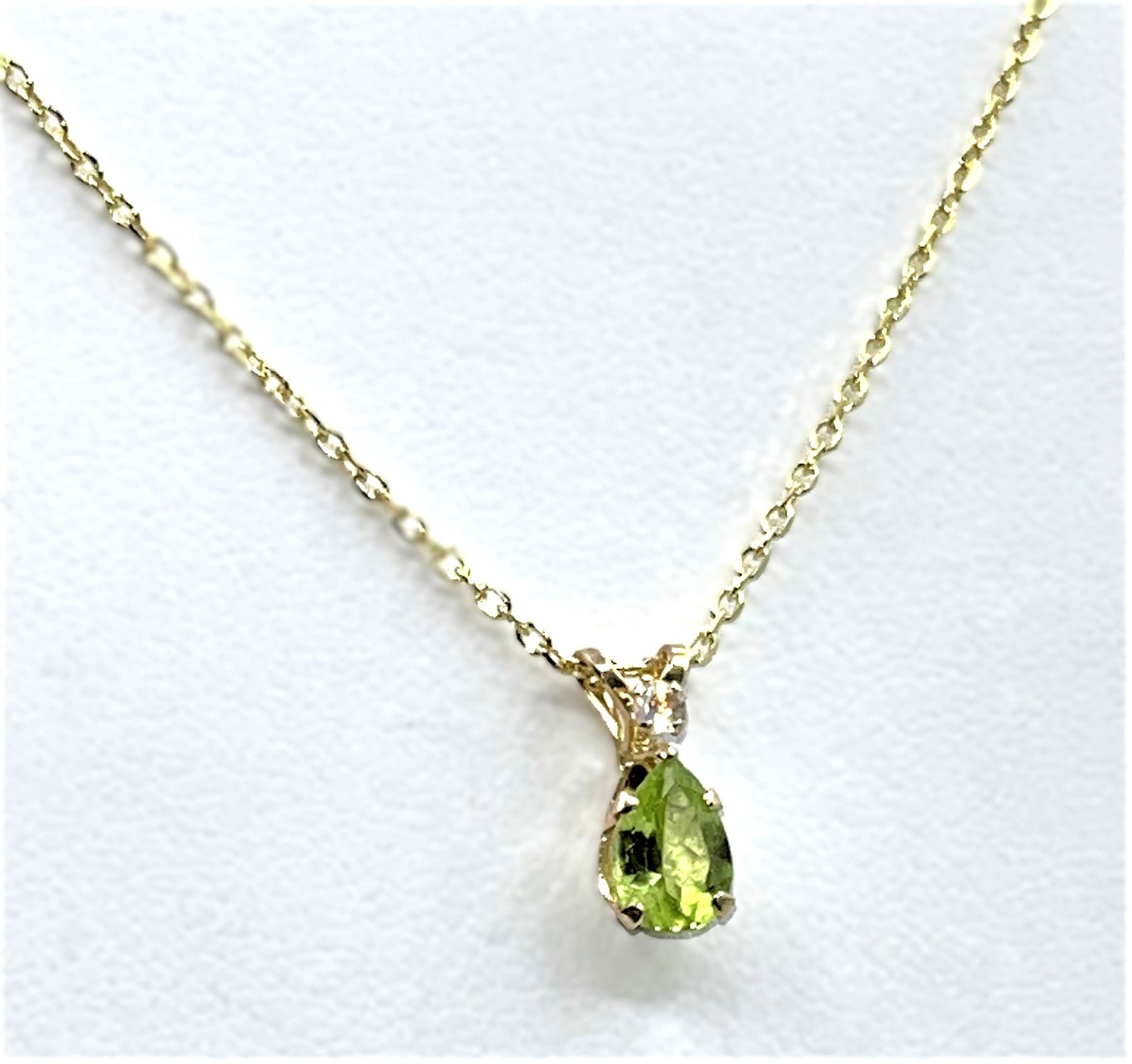 (0.03CT) PENDANT WITH GOLD PLATED STERLING SILVER CHAIN, W/A $375.00. PERIDOT IS THE BIRTHSTONE FOR AUGUST. **ALL ITEMS MUST BE REMOVED BY 5PM SATURDAY, NOVEMBER 22ND 2025. ALL REMAINING ITEMS WILL BE SUBJECT TO A $6.00 PER DAY STORAGE CHARGE. ANY ITEMS REMAINING AFTER MONDAY, DECEMBER 8TH 2025 WILL BE CONSIDERED FORFEITED. NO REFUNDS WILL BE ISSUED FOR FORFEITED ITEMS. TO SCHEDULE A PICK UP APPOINTMENT CLICK HERE