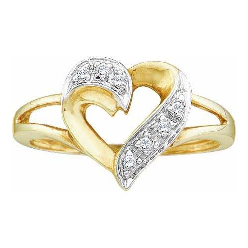 10KT Yellow Gold 0.05CTW DIAMOND LADIES HEART RING **|**|** Source: 21530 ; Metal: Gold ; Metal Purity: 10KT ; Ring Size: 7 ; Main Stone: I1-I2 ; Total Carat: 0.05 ; Main Stone Color: H-I Color ; All diamonds are natural but colored diamonds are enhanced.