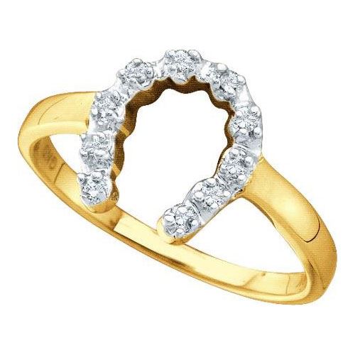 10KT Yellow Gold 0.05CTW DIAMOND LADIES HORSE SHOE RING **|**|** Source: 29430 ; Metal: Gold ; Metal Purity: 10KT ; Ring Size: 7 ; Main Stone: I1-I2 ; Total Carat: 0.05 ; Main Stone Color: H-I Color ; All diamonds are natural but colored diamonds are enhanced.