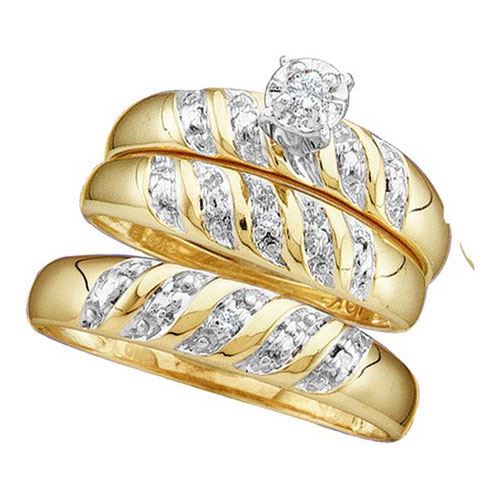 10KT Yellow Gold 0.07CTW DIAMOND ROUND CENTER TRIO SET **|**|** Source: 15483 ; Metal: Gold ; Metal Purity: 10KT ; Ring Size: Women: 7, Men: 10 ; Main Stone: I1-I2 ; Total Carat: 0.07 ; Main Stone Color: H-I Color ; All diamonds are natural but colored diamonds are enhanced.