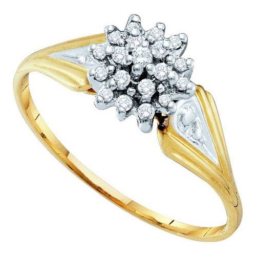 10KT Yellow Gold 0.10CTW DIAMOND CLUSTER RING **|**|** Source: 10222 ; Metal: Gold ; Metal Purity: 10KT ; Ring Size: 7 ; Main Stone: I1-I2 ; Total Carat: 0.1 ; Main Stone Color: H-I Color ; All diamonds are natural but colored diamonds are enhanced.