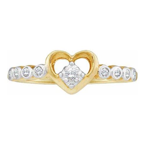 10KT Yellow Gold 0.10CTW DIAMOND LADIES HEART RING **|**|** Source: 21529 ; Metal: Gold ; Metal Purity: 10KT ; Ring Size: 7 ; Main Stone: I1-I2 ; Total Carat: 0.1 ; Main Stone Color: H-I Color ; All diamonds are natural but colored diamonds are enhanced.