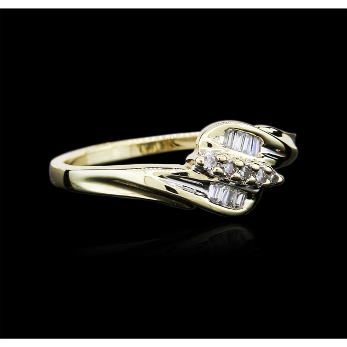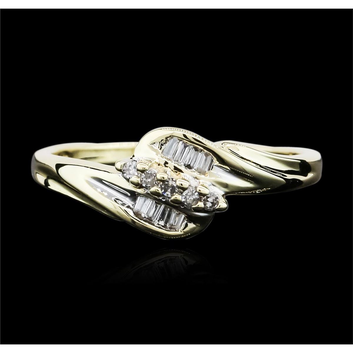 One ring featuring: 10KT yellow gold weighing 2.20 grams containing round/baguette cut diamonds with a total weight of 0.10cts.
