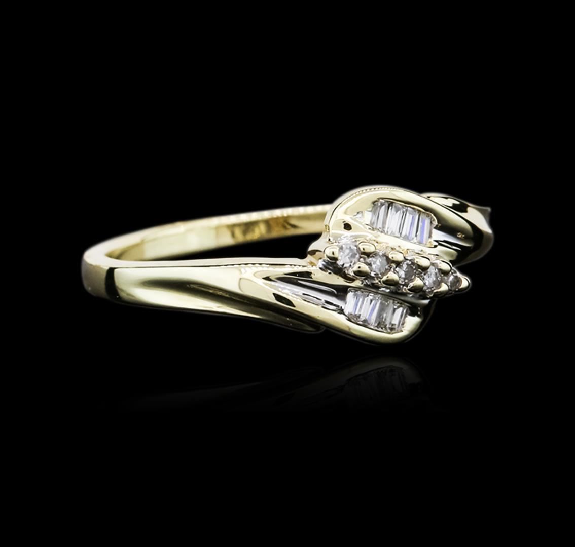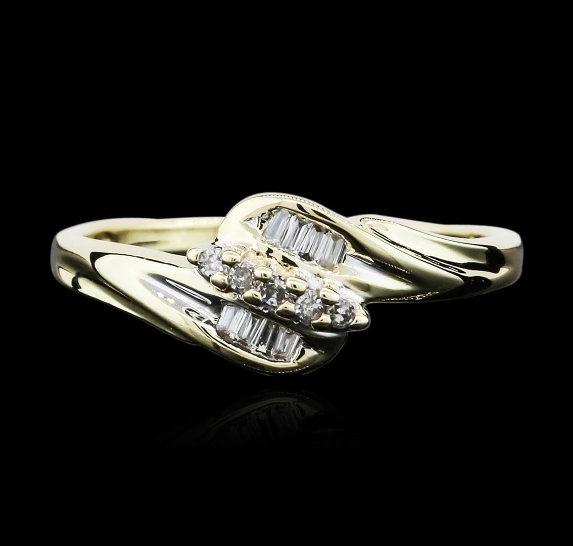 One ring featuring: 10KT yellow gold weighing 2.20 grams containing round/baguette cut diamonds with a total weight of 0.10cts.