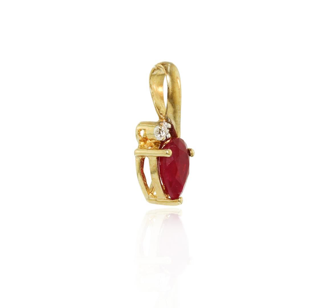 One 10KT Yellow Gold 0.35ct Ruby and Diamond Pendant. Total Weight of item is 10KT Yellow Gold is 0.5 grams.