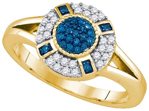 10KT Yellow Gold 0.39CTW BLUE DIAMOND FASHION RING **|**|** Source: 86364 ; Metal: Gold ; Metal Purity: 10KT ; Ring Size: 7 ; Main Stone: I1-I2 ; Total Carat: 0.4 ; Main Stone Color: H-I Color ; All diamonds are natural but colored diamonds are enhanced.