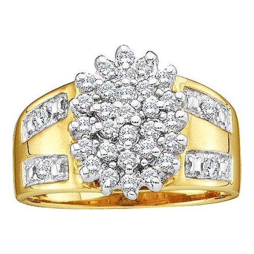 10KT Yellow Gold 0.50CTW DIAMOND CLUSTER RING **|**|** Source: 7647 ; Metal: Gold ; Metal Purity: 10KT ; Ring Size: 7 ; Main Stone: I1-I2 ; Total Carat: 0.5 ; Main Stone Color: H-I Color ; All diamonds are natural but colored diamonds are enhanced.