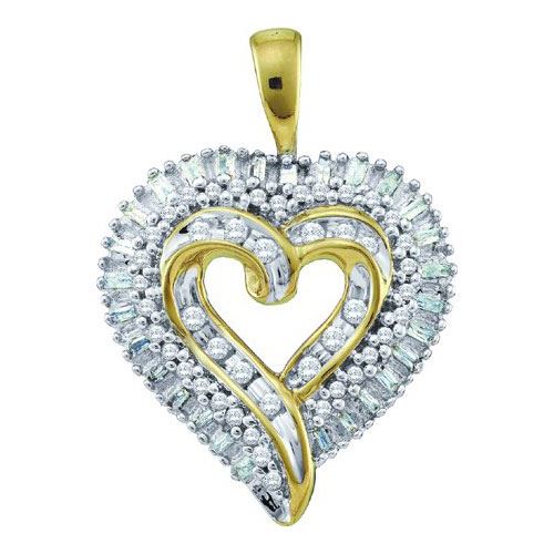 10KT Yellow Gold 0.50CTW ROUND BAGGUETTE DIAMOND HEART **|**|** Source: 15532 ; Metal: Gold ; Metal Purity: 10KT ; Ring Size: ; Main Stone: I1-I2 ; Total Carat: 0.5 ; Main Stone Color: H-I Color ; All diamonds are natural but colored diamonds are enhanced.