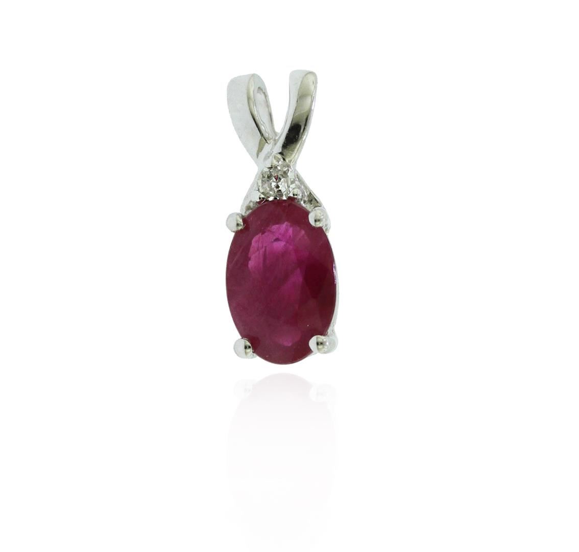 One 10KT Yellow Gold 0.5ct Ruby and Diamond Pendant. Total Weight of item is 10KT Yellow Gold is 0.4 grams.