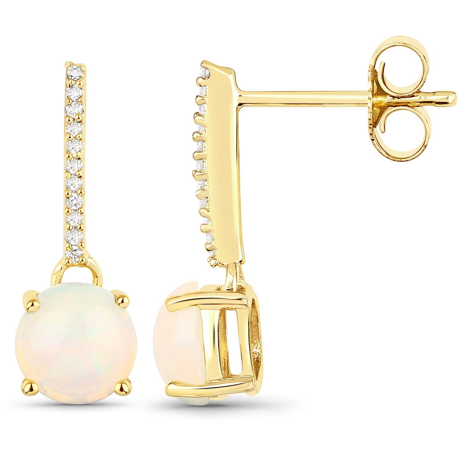 10KT Yellow Gold 1.06ctw Ethiopian Opal and White Diamond Earrings